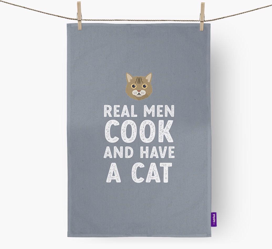 Real Men Cook And Have A Cat: Personalized Selkirk Rex Dish Towel