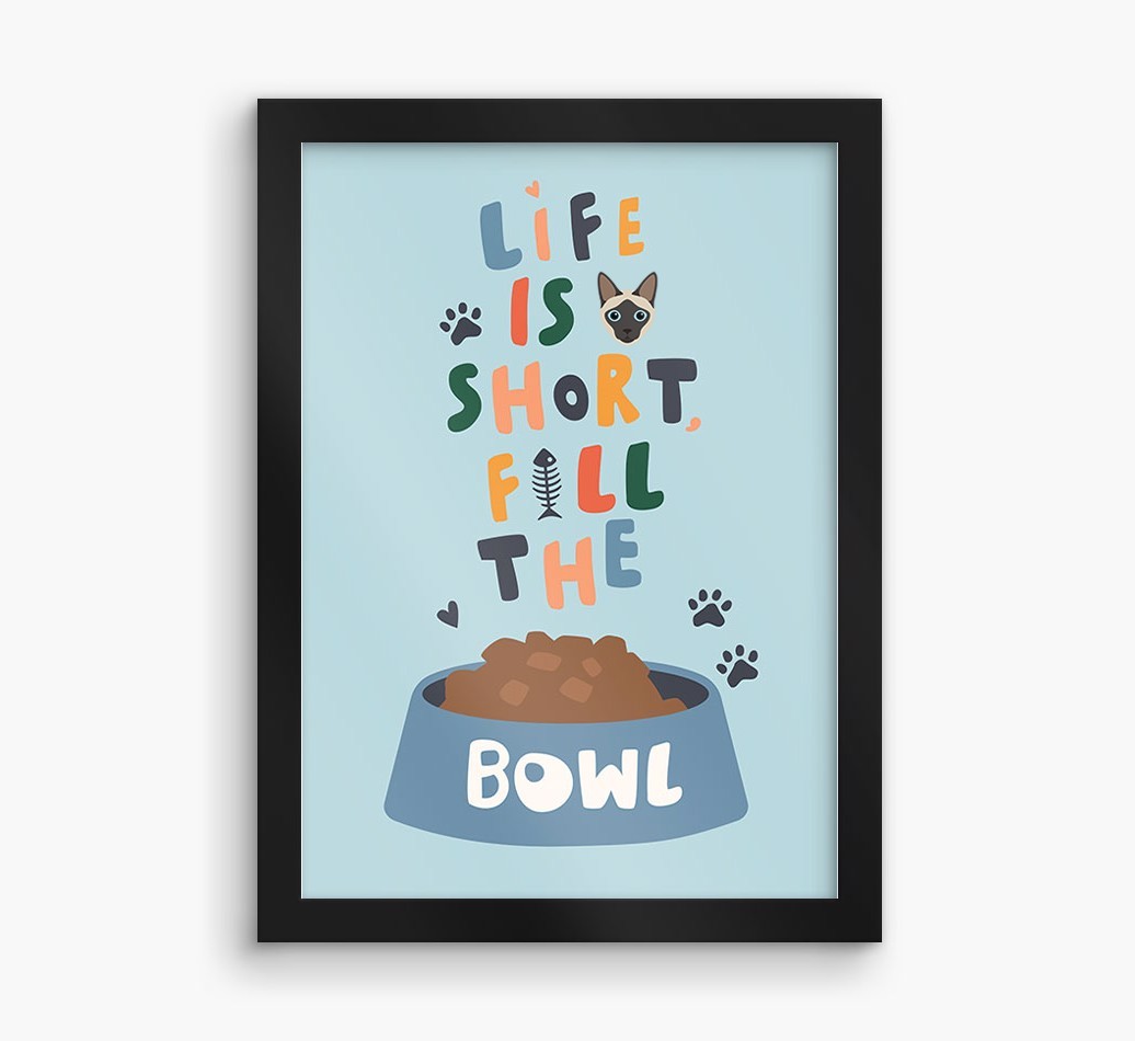 Let this pawsome print be a reminder that life is short, so fill the bowl! We're sure that Siamese will certainly be bowled over by this ins-purr-rational motto.