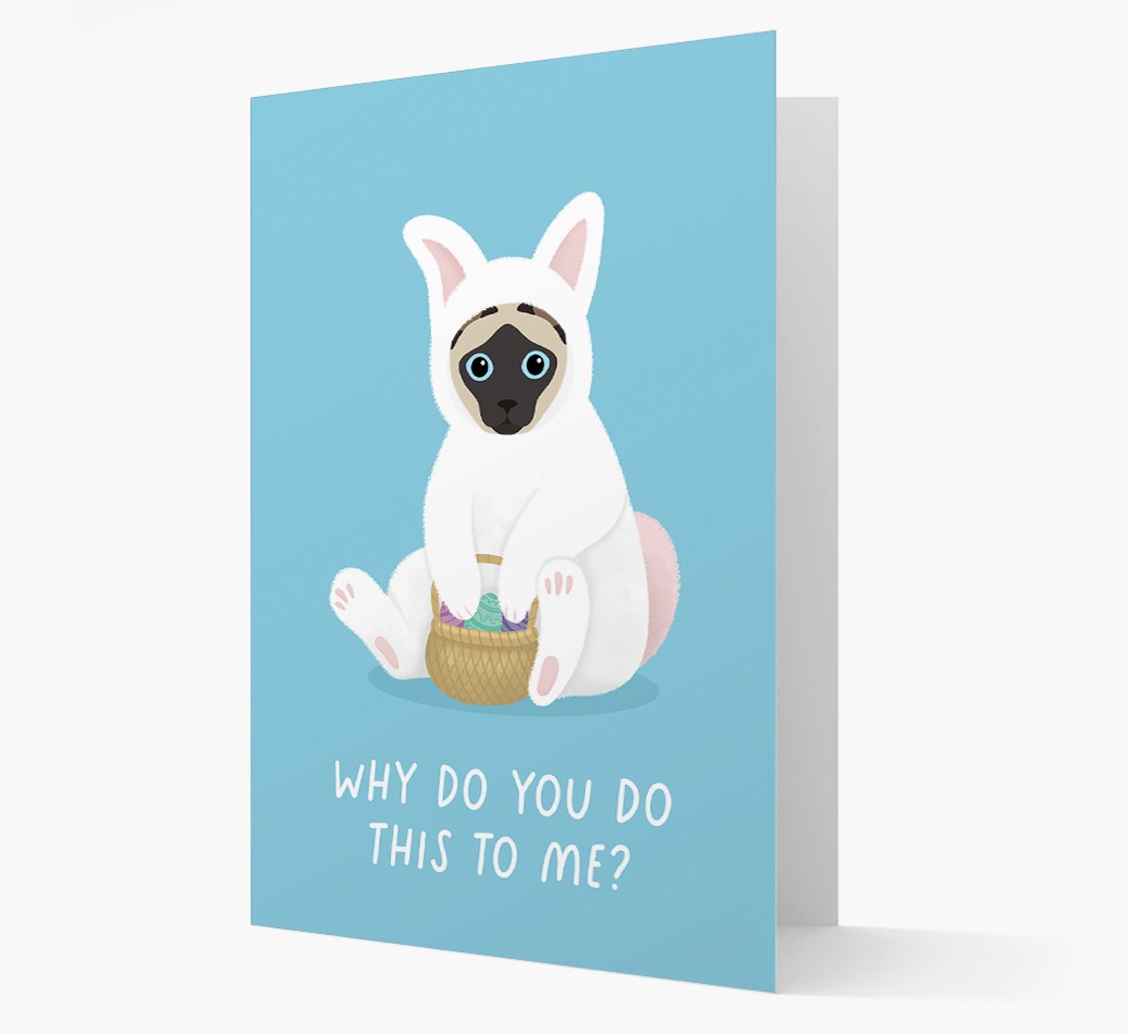 Well...now you don't have to since this card does it for you! Although Siamese might ask 'Why do you do this to me?', we guarantee they won't be companining after they see how egg-ceptional this card is! This card features your Siamese's personalized icon and is available in 3 pastel colors.