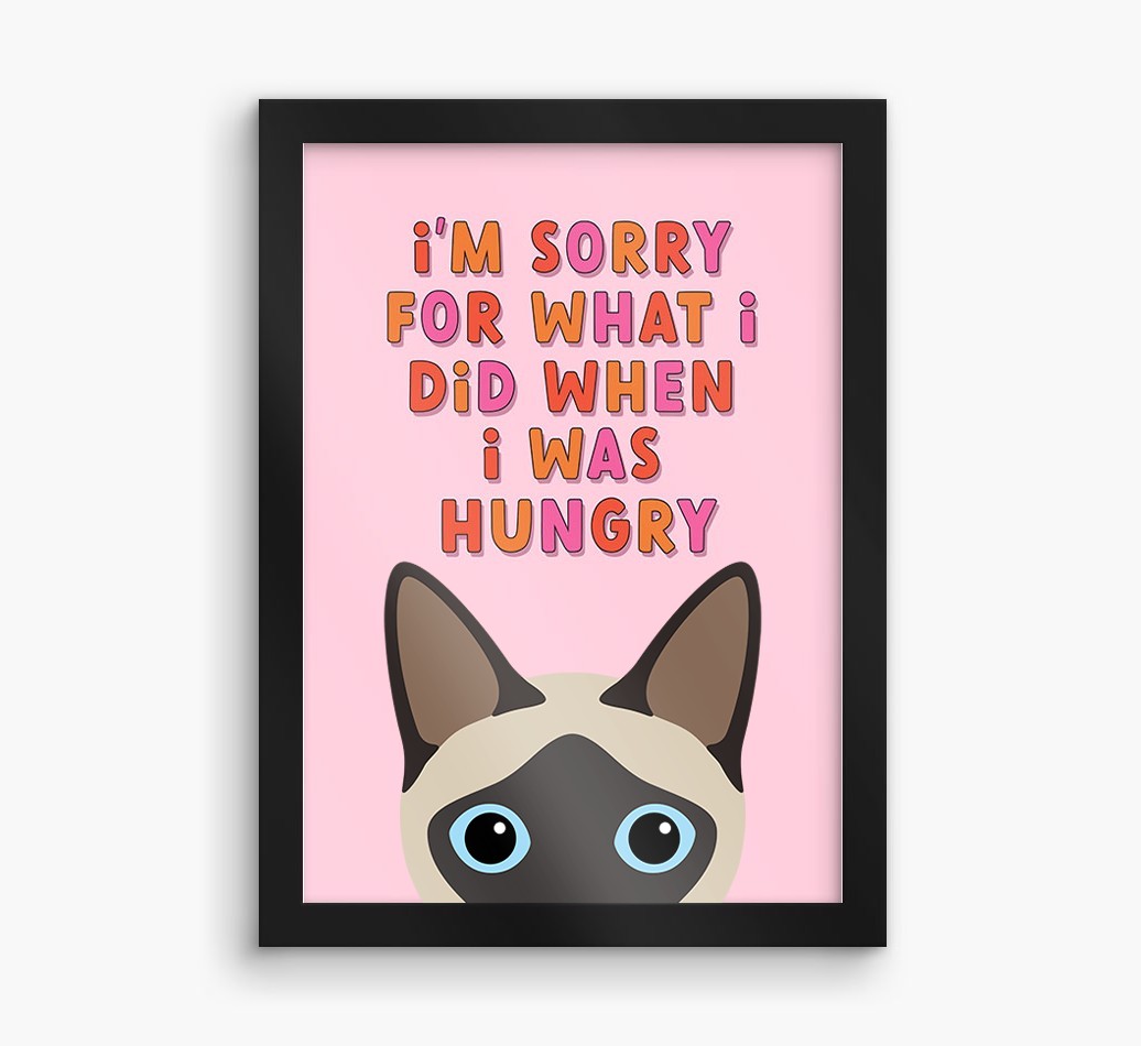 Does Siamese turn into a wild animal when they're hungry? Can you relate? With this print in the home, at least you'll always be reminded of how sorry your Siamese is for their actions when they were hungry. Just look at this print and your kitty's cute face and all will be fur-given... Hopefully.
