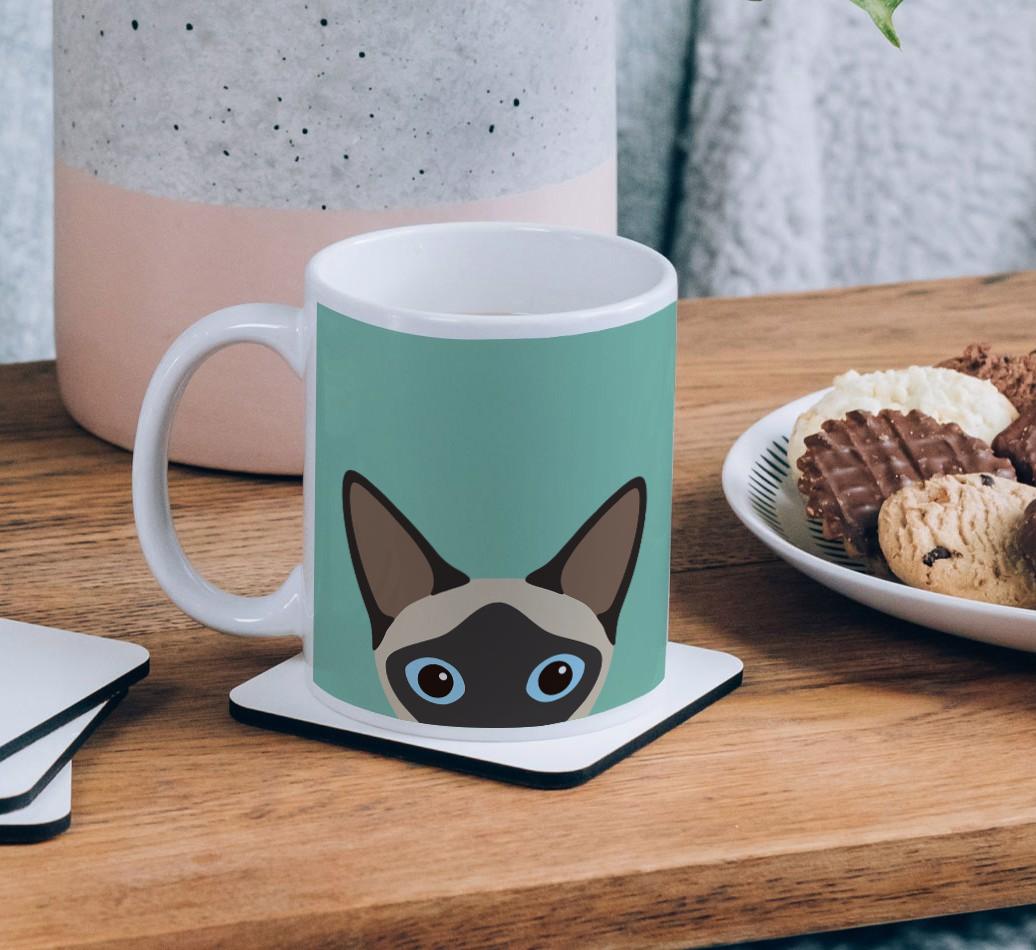 Enjoy the perfect coffee break with a mug that stars your feline friend! Featuring a Yappy.com exclusive Siamese peeking icon, this pawgeous mug will look at home in any cat lover's kitchen and we're pretty sure Siamese Modern will be a fan too.
