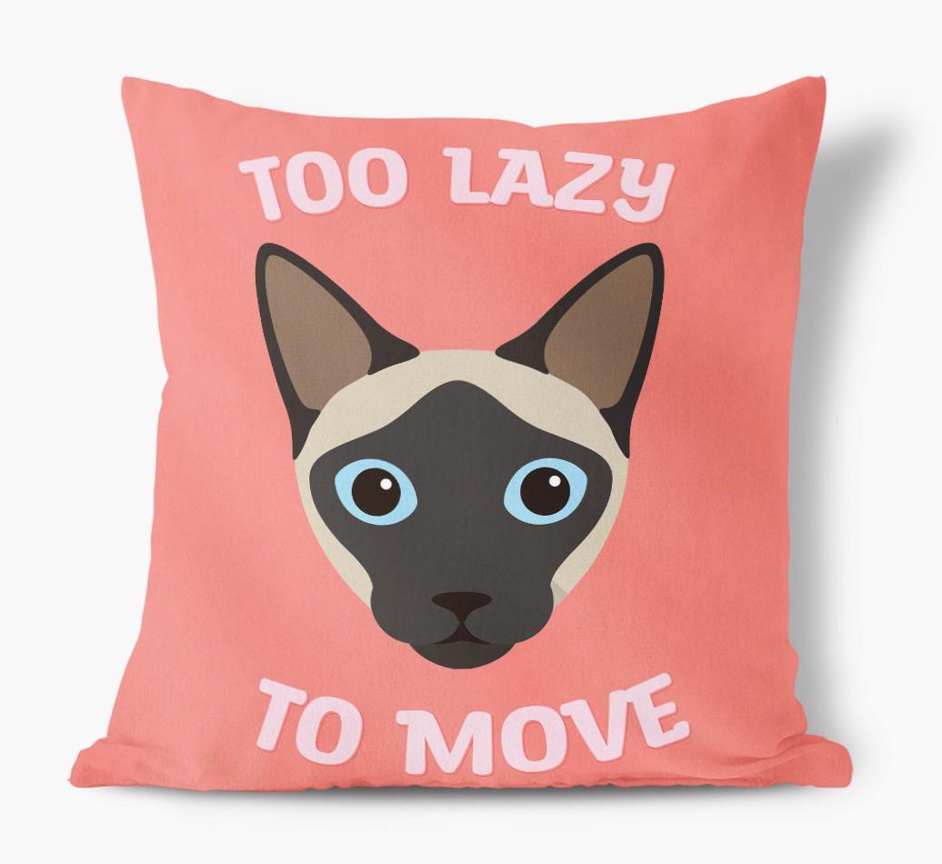 Featuring your Siamese's icon, the words 'Too Lazy To Move' and available in five bold colors, this pillow will add a sprinkle of Siamese Modern's pawsonality to any living area.