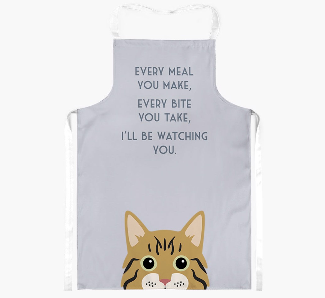 This apron is a must-have for those who share a kitchen with a food-loving feline!