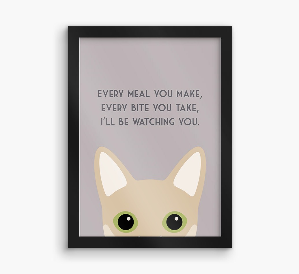 Printed with the words, ‘Every meal you make, every bite you take, I’ll be watching you’ and complete with our cute Singapura peeking from the bottom of the design, this artwork will look great on display in the kitchen or anywhere Singapura likes to watch you eat!