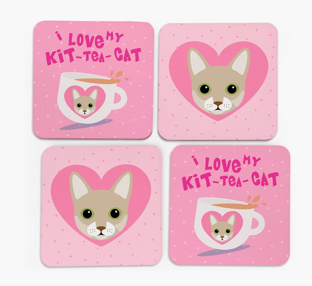 'I Love My Kit-Tea-Cat' - Personalized Singapura Coasters (Set of 4)
