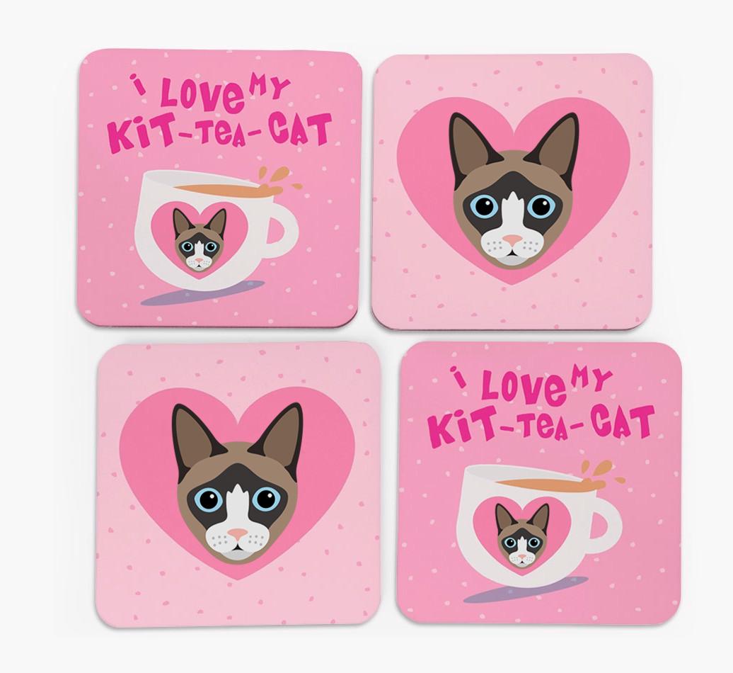 'I Love My Kit-Tea-Cat' - Personalized Snowshoe Coasters (Set of 4)