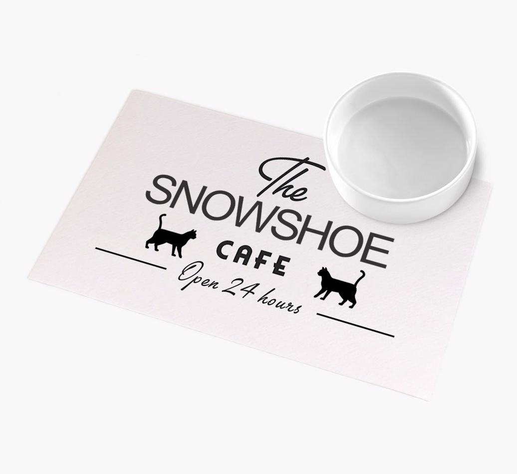 'The Snowshoe Cafe' - Personalized Snowshoe Feeding Mat