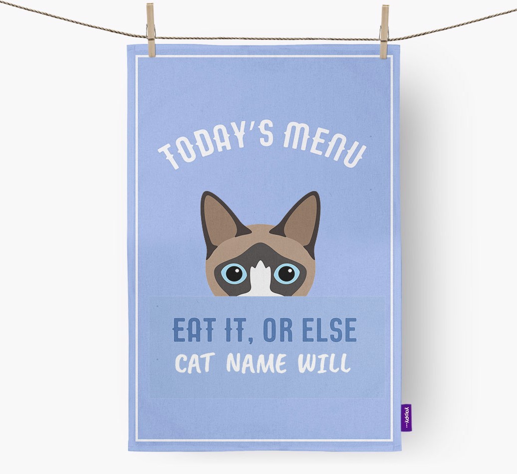 A kitchen essential for Snowshoe’s pawrent, this furbulous dish towel also doubles up as a warning that any unmonitored food is fair game to their hungry Snowshoe!