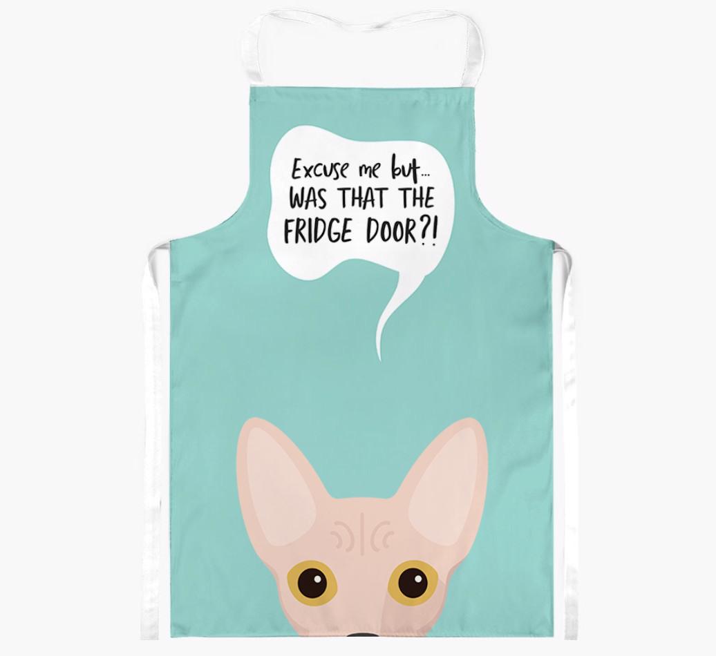 Featuring your cat's cheeky icon and available in five eye-catching colors, this apron is a must-have for parents of greedy kitties!