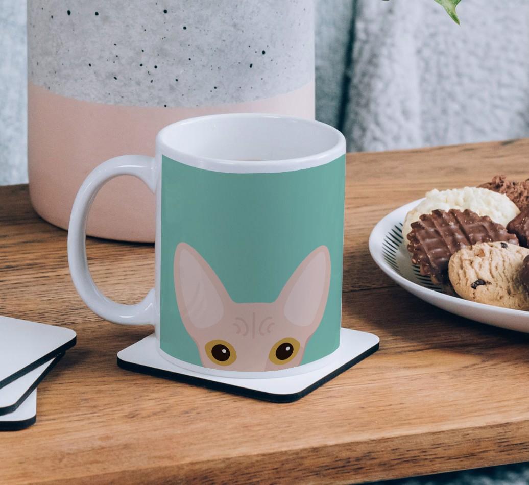 Enjoy the perfect coffee break with a mug that stars your feline friend! Featuring a Yappy.com exclusive Sphynx peeking icon, this pawgeous mug will look at home in any cat lover's kitchen and we're pretty sure Sphynx will be a fan too.
