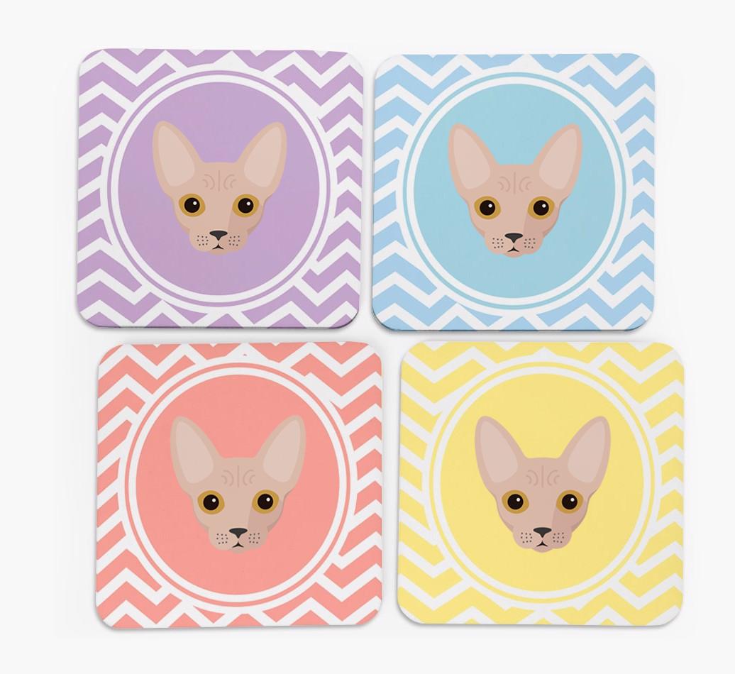 Available in five vibrant colors and personalized with cute Sphynx icons, these coasters are a clawsome way for Sphynx to help protect your surfaces from drink stains and spills.
