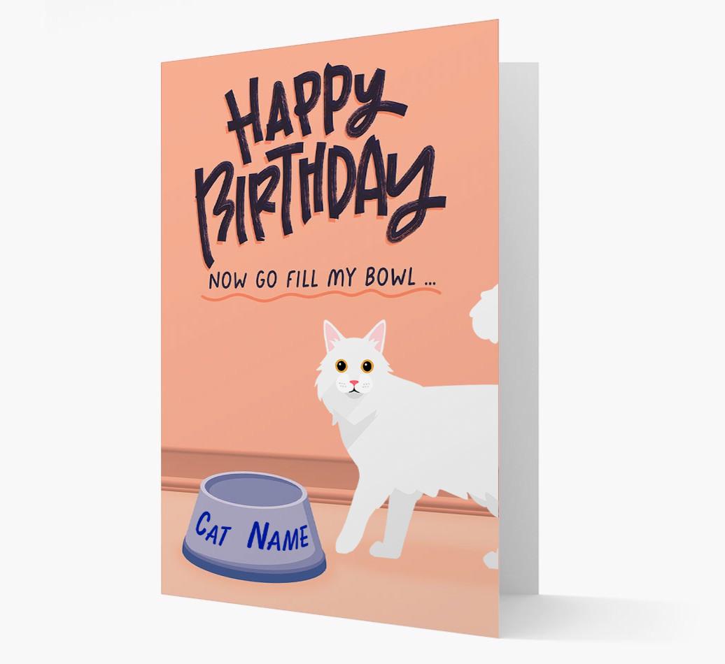Personalized with your Cat’s icon and name and available in four colors, this card is purrfect for Cat’s who love to wish you happy birthday but equally love their feline food!
