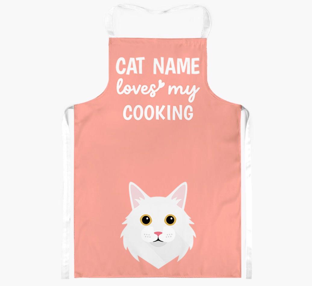 Let everyone know that your feline friend seriously loves your cooking with this contemporary apron, the purrfect addition to any kitchen! It's even personalized with their name and icon to make it an extra special gift.