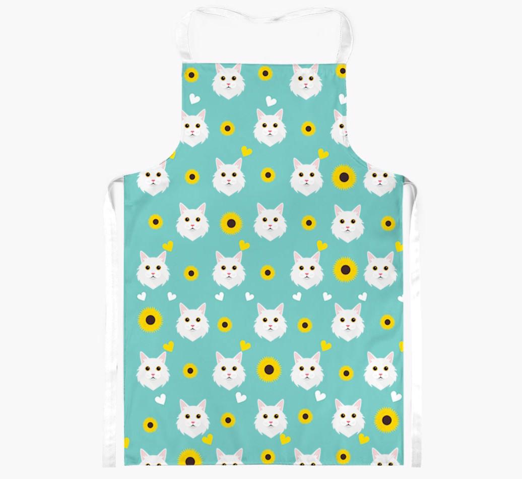 This apron has a delightful sunflower and heart pattern, and best of all - it's personalized with Turkish Angora's face too! This cute and colorful apron is sure to put a smile on every cat lover's face.
