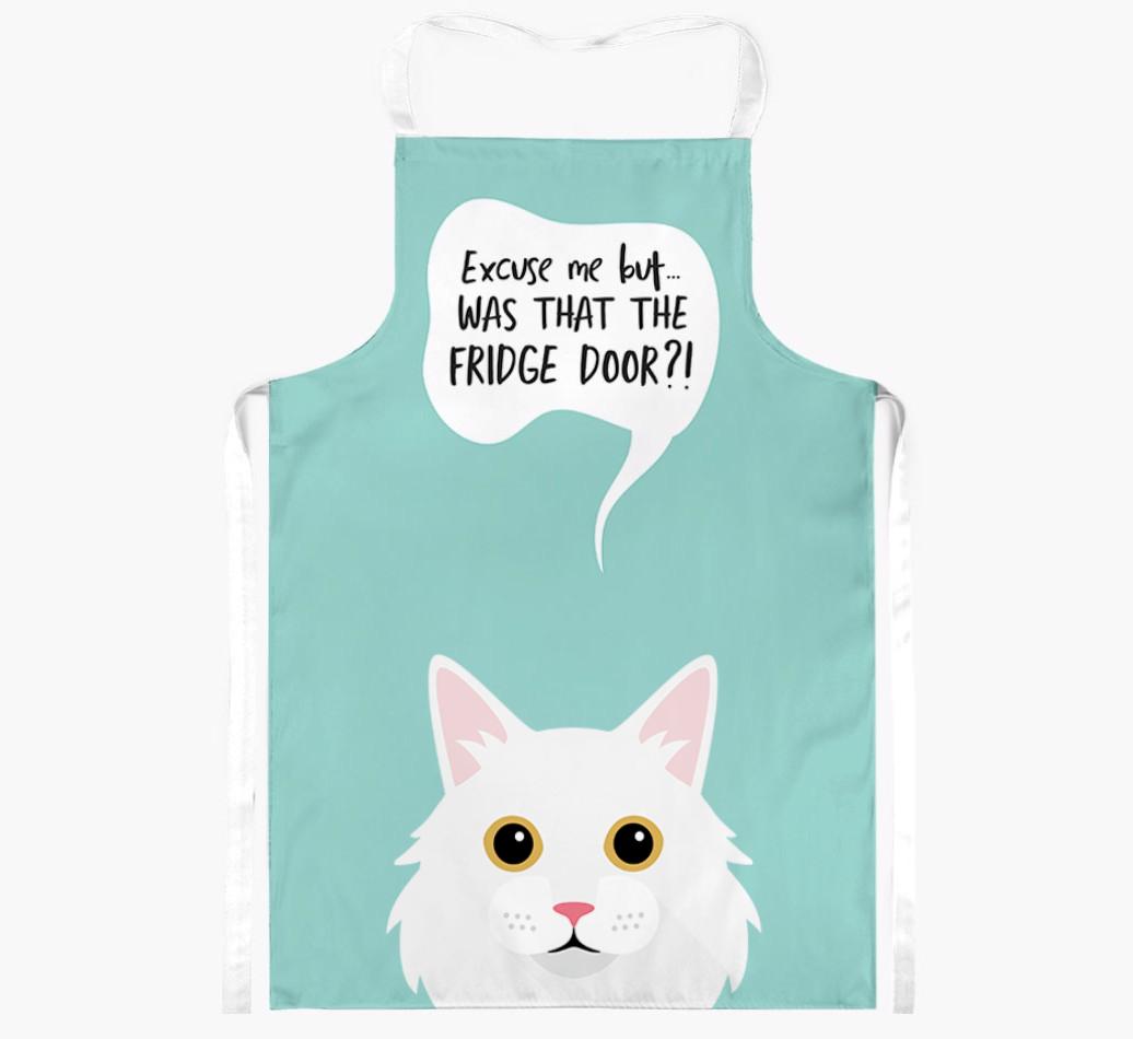 Featuring your cat's cheeky icon and available in five eye-catching colors, this apron is a must-have for parents of greedy kitties!