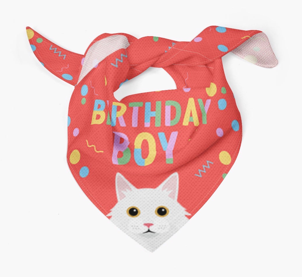 Featuring your Cat's cheeky icon and available in four pawgeous colors, this bandana showcases Turkish Angora's cheeky pawsonality on their birthday!
