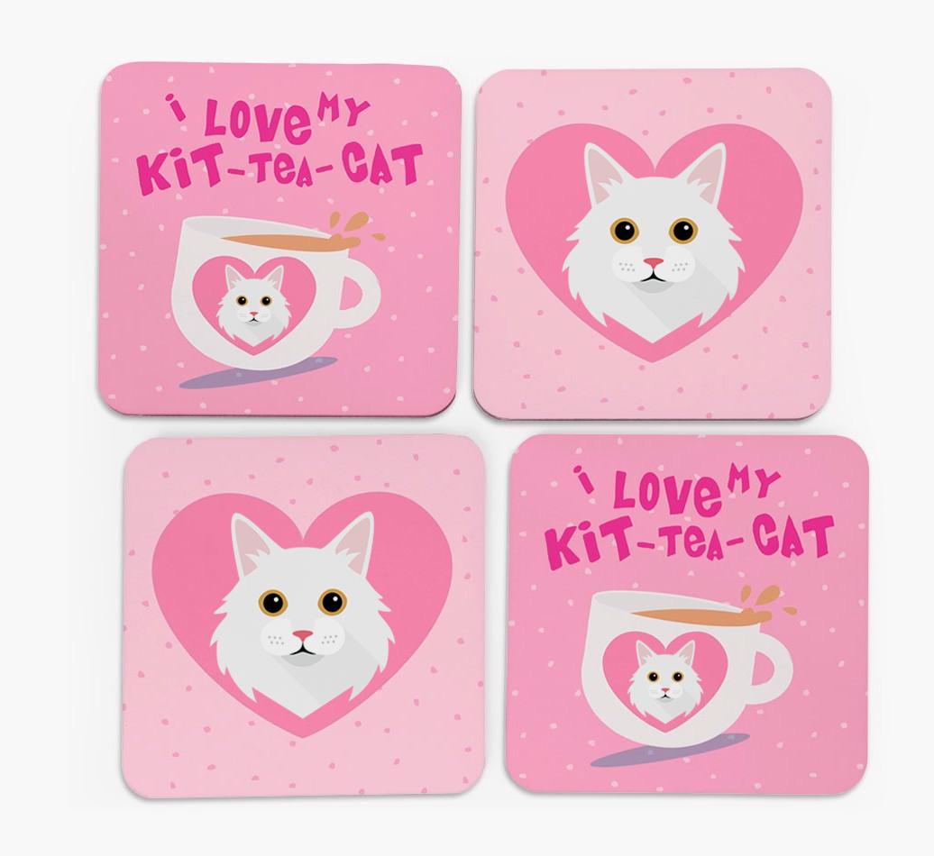 'I Love My Kit-Tea-Cat' - Personalized Turkish Angora Coasters (Set of 4)