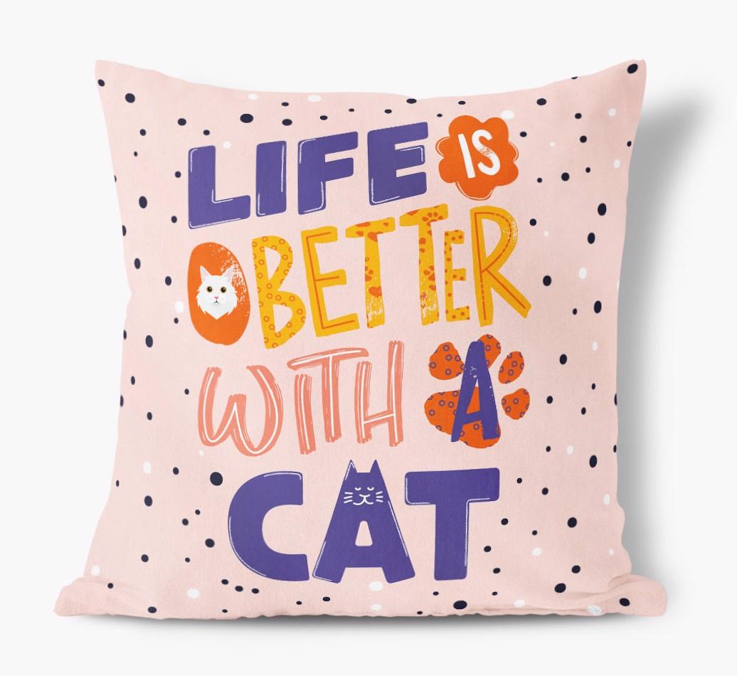 Featuring your Cat's icon and the words 'Life is Better With a Cat', this pillow will add a sprinkle of Turkish Angora's pawsonality to any living area.