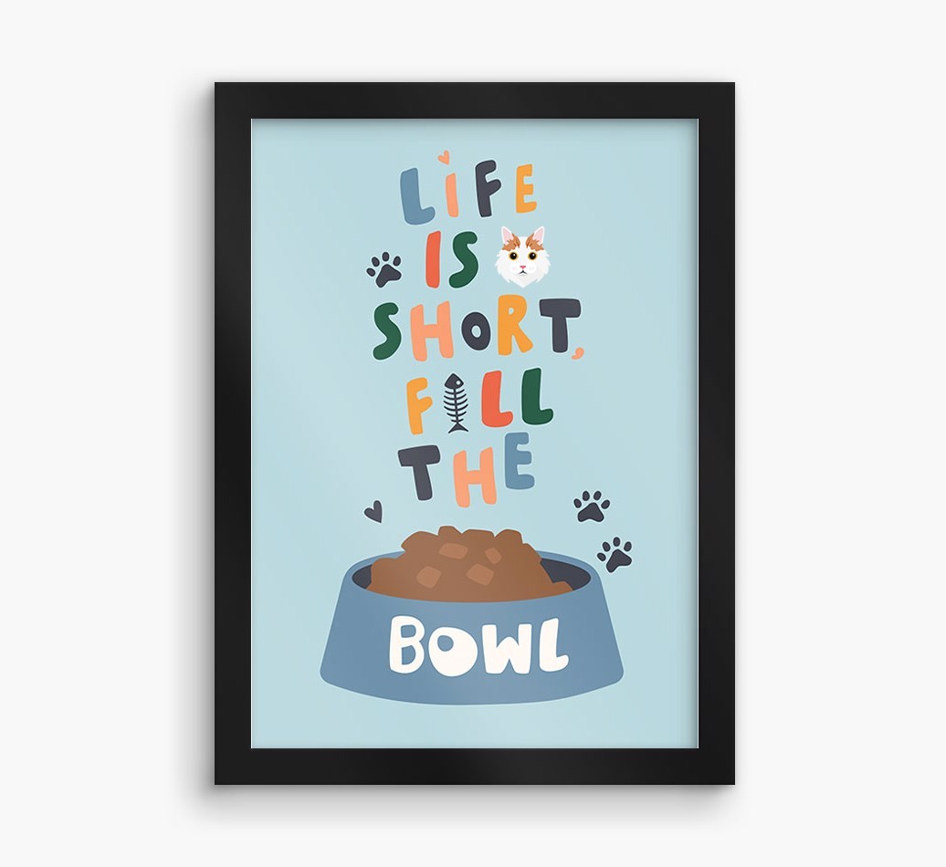 Life Is Short, Fill The Bowl: Personalized Cat Framed Print