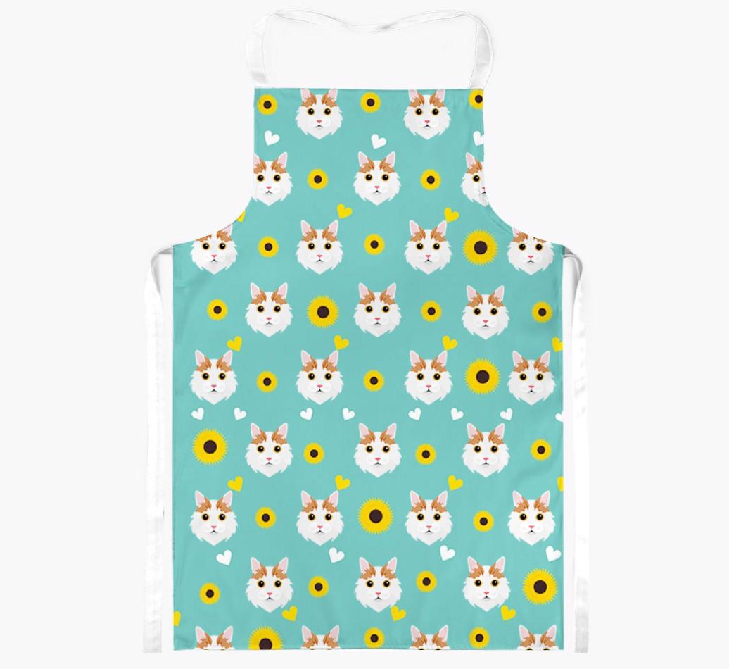 This apron has a delightful sunflower and heart pattern, and best of all - it's personalized with Turkish Van's face too! This cute and colorful apron is sure to put a smile on every cat lover's face.