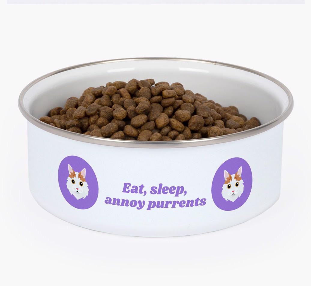 Eat, Sleep, Annoy Purrents: Personalized Turkish Van Enamel Cat Bowl