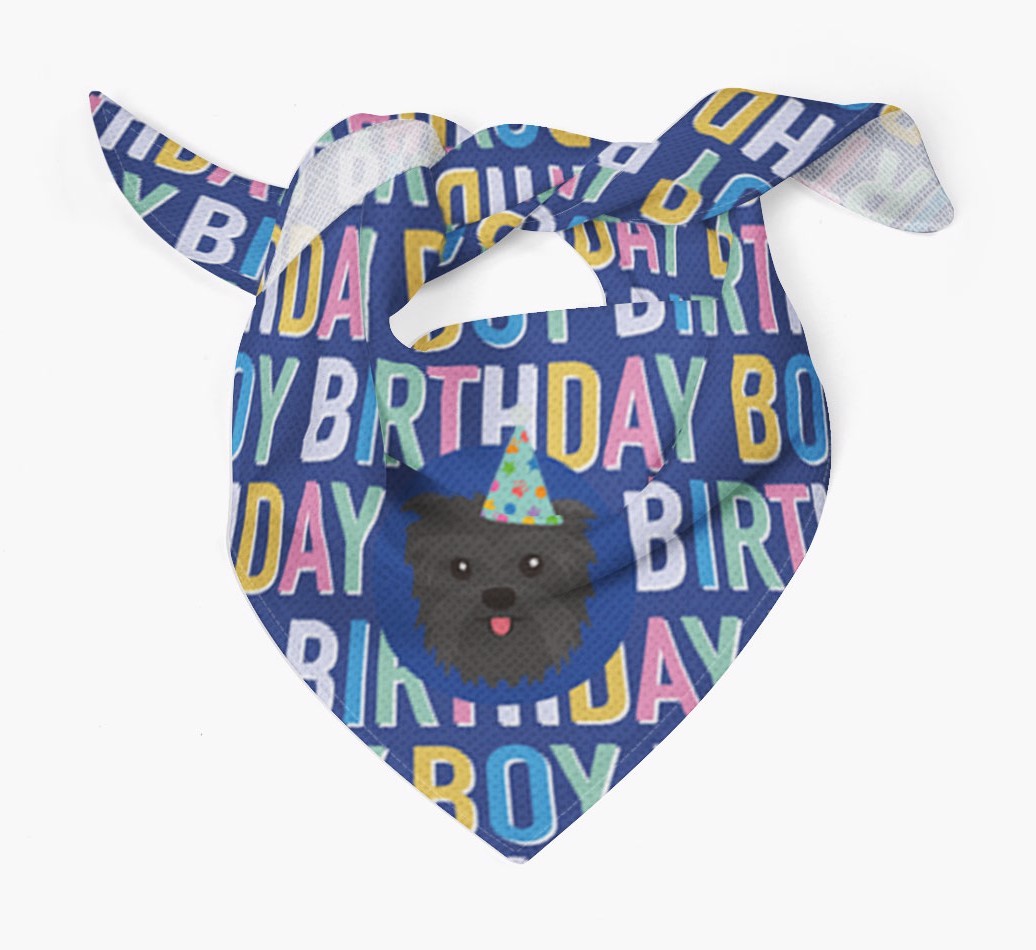 Featuring a colorful text pattern that reads 'birthay boy' and personalized with Affenpinscher's cute icon (complete with a fun party hat), your Affie will look simply pawgeous on their special day when they're wearing this bandana.