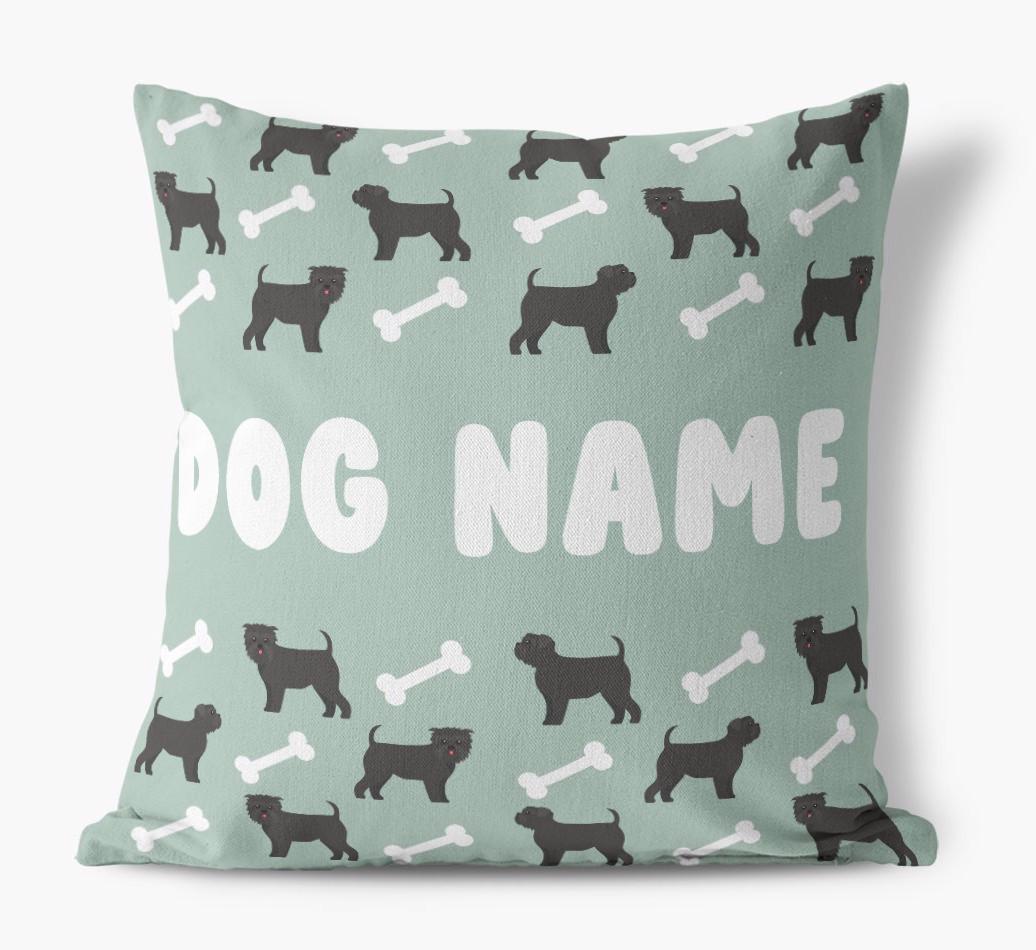 Personalized with Affenpinscher’s name against a background of Affie icons and bones, this gorgeous pillow is full of pawsonality.