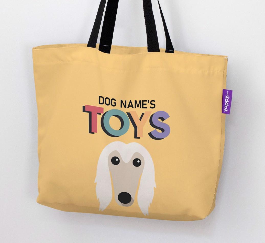 Don’t worry, we’ve got you covered with this pawsonalized canvas bag made for your Afghan Hound’s toy collection!