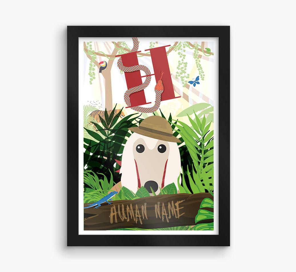 Starring your Afghan Hound as an intrepid explorer, this jungle-themed print will look rawr-some wherever it's displayed in the home.