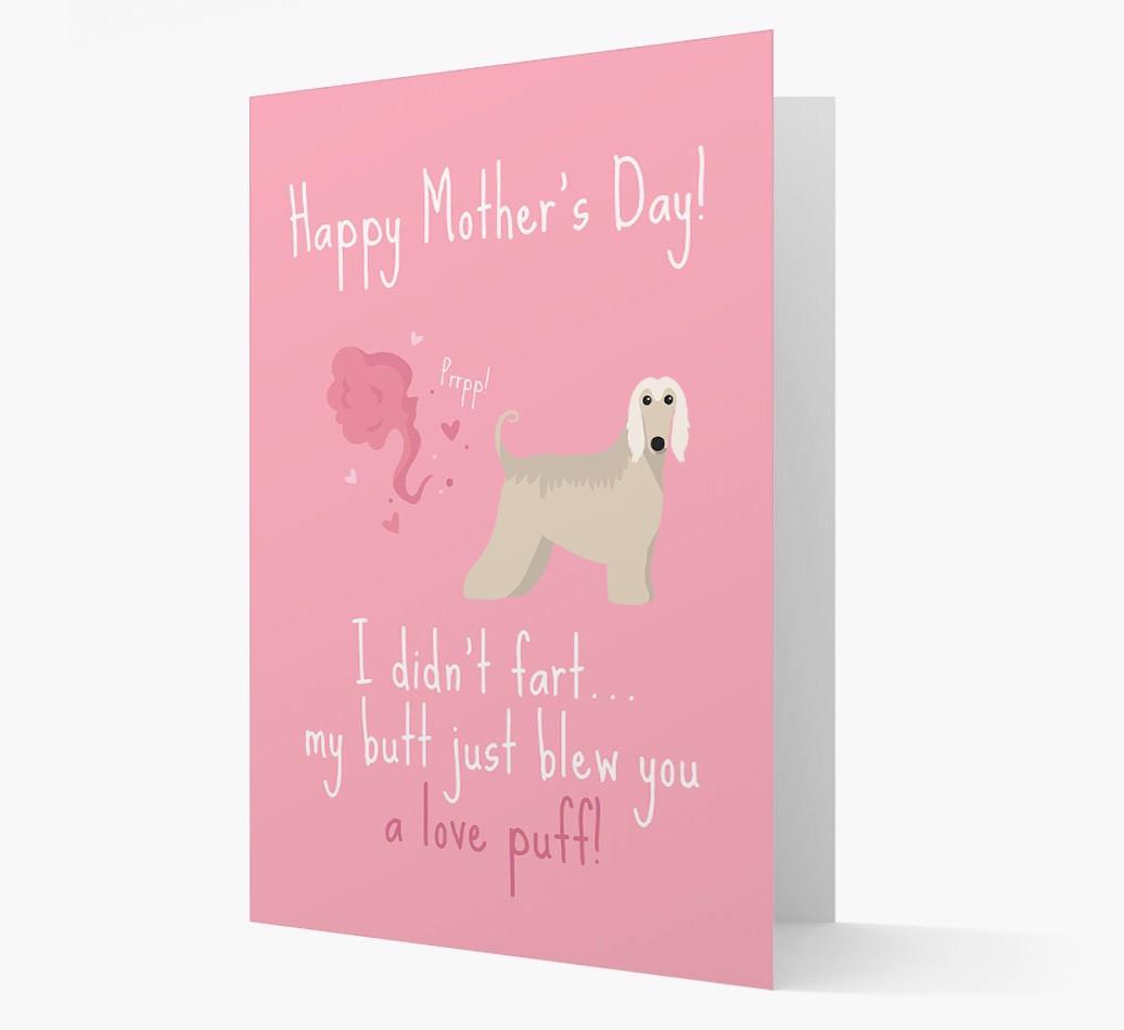 Make her laugh this Mother's Day with a funny card from Afghan Hound. Because what could be better than receiving a "love puff" from her Afghan Hound!