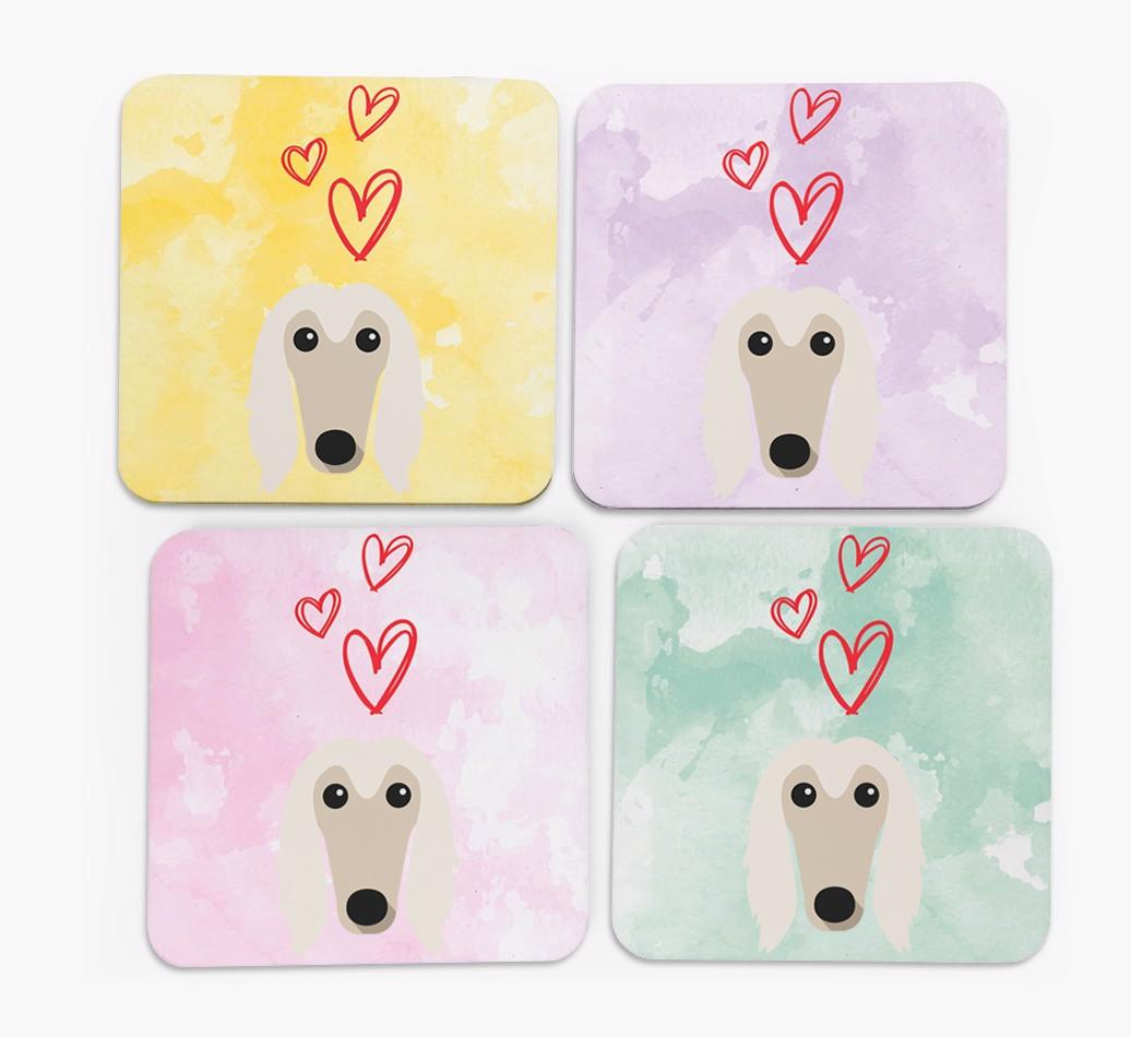 Each coaster comes in a pretty pastel color and features a pawgeous Afghan Hound icon, making them the pawfect homeware addition to any Afghan Hound lover's home.