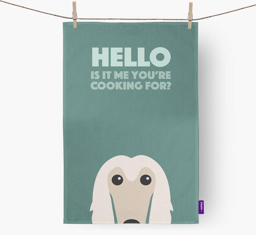 This gorgeous dish towel is sure to delight every Afghan Hound pawrent, especially as it stars their pup asking their favorite question, 'is it me you're cooking for?'