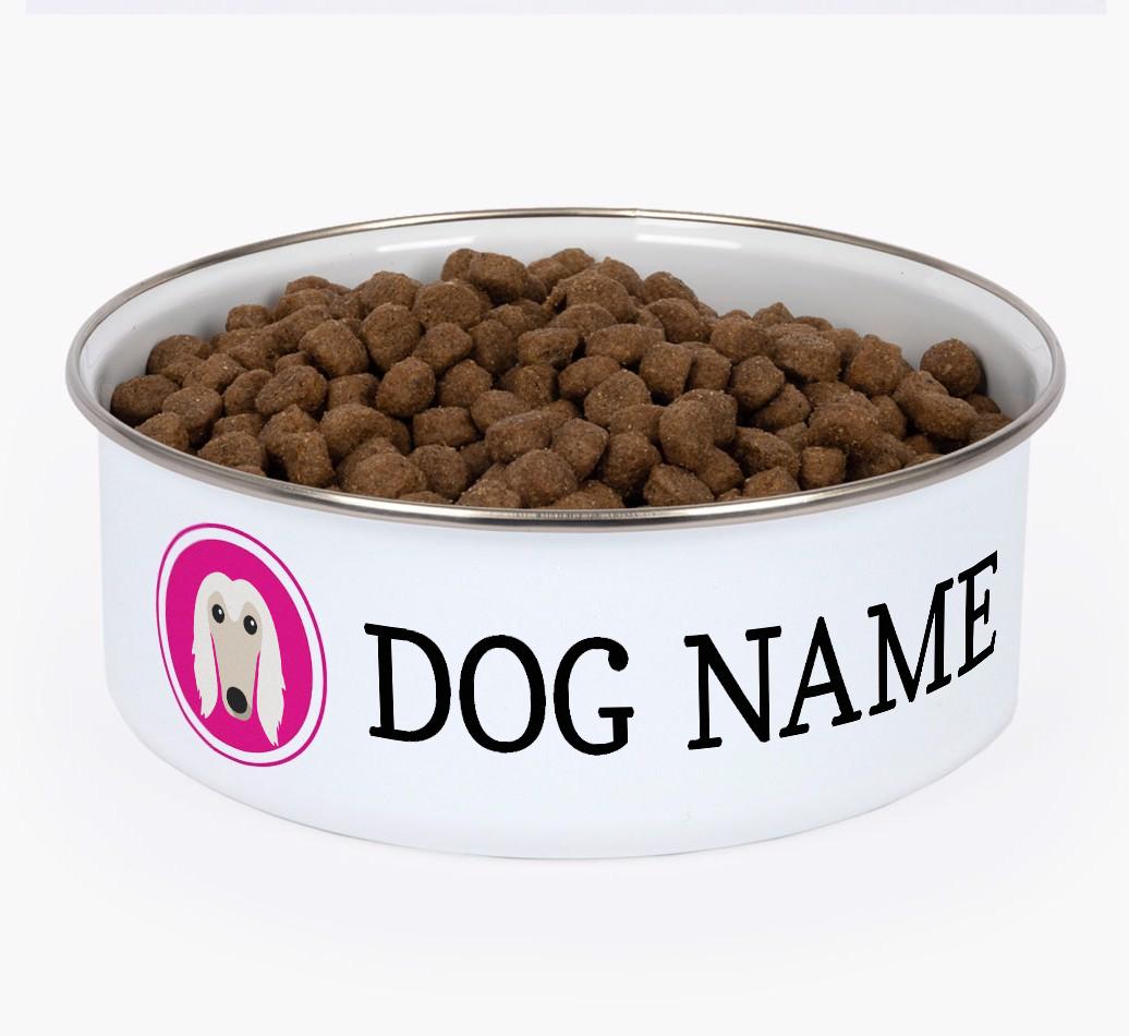 Name and Icon: Personalized Enamel Afghan Hound Bowl