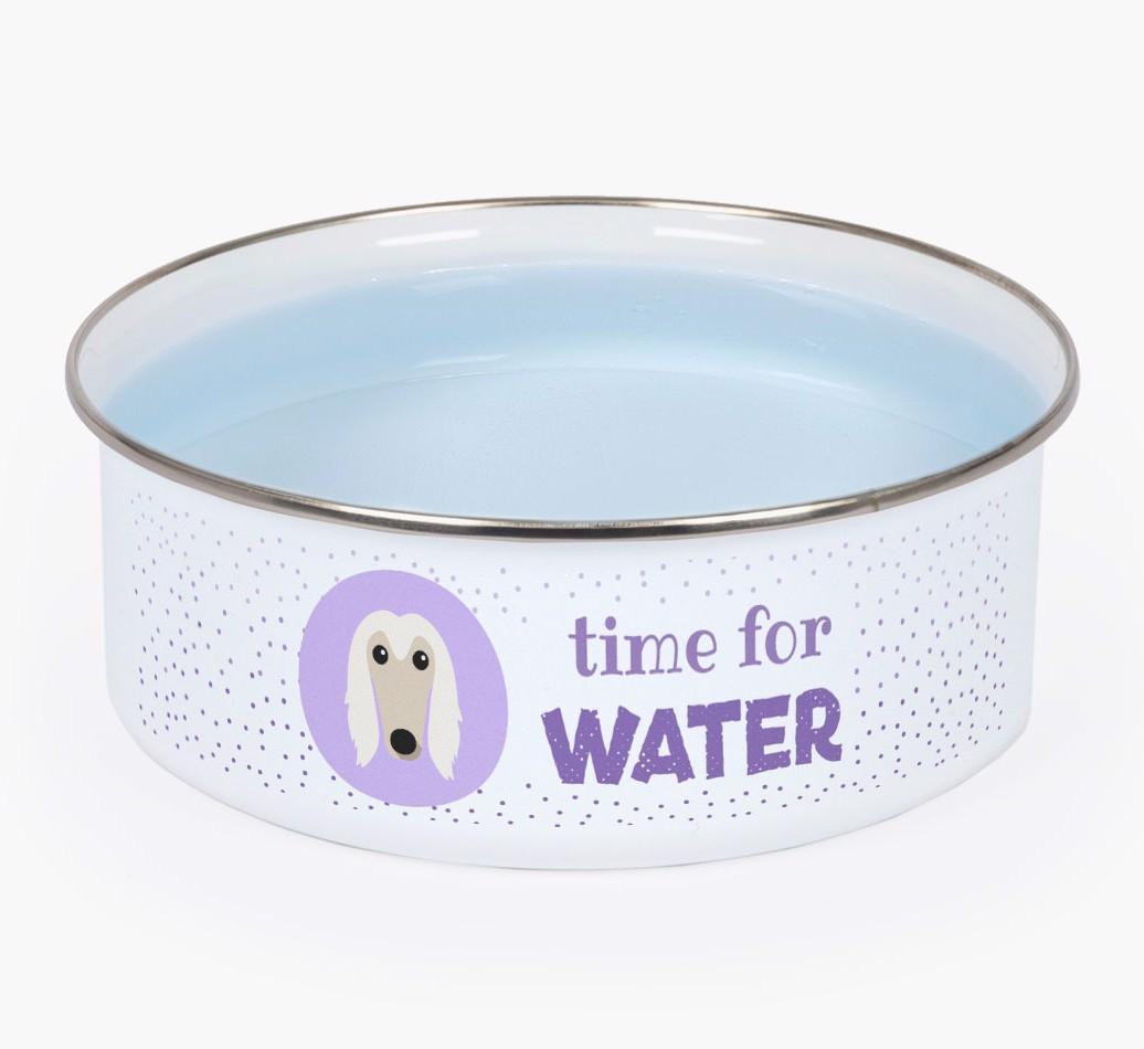 Time For Water: Personalized Enamel Afghan Hound Bowl