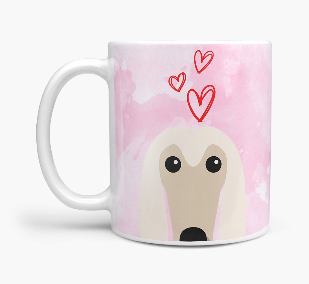 Peeking Dog & Hearts: Personalized Afghan Hound Mug