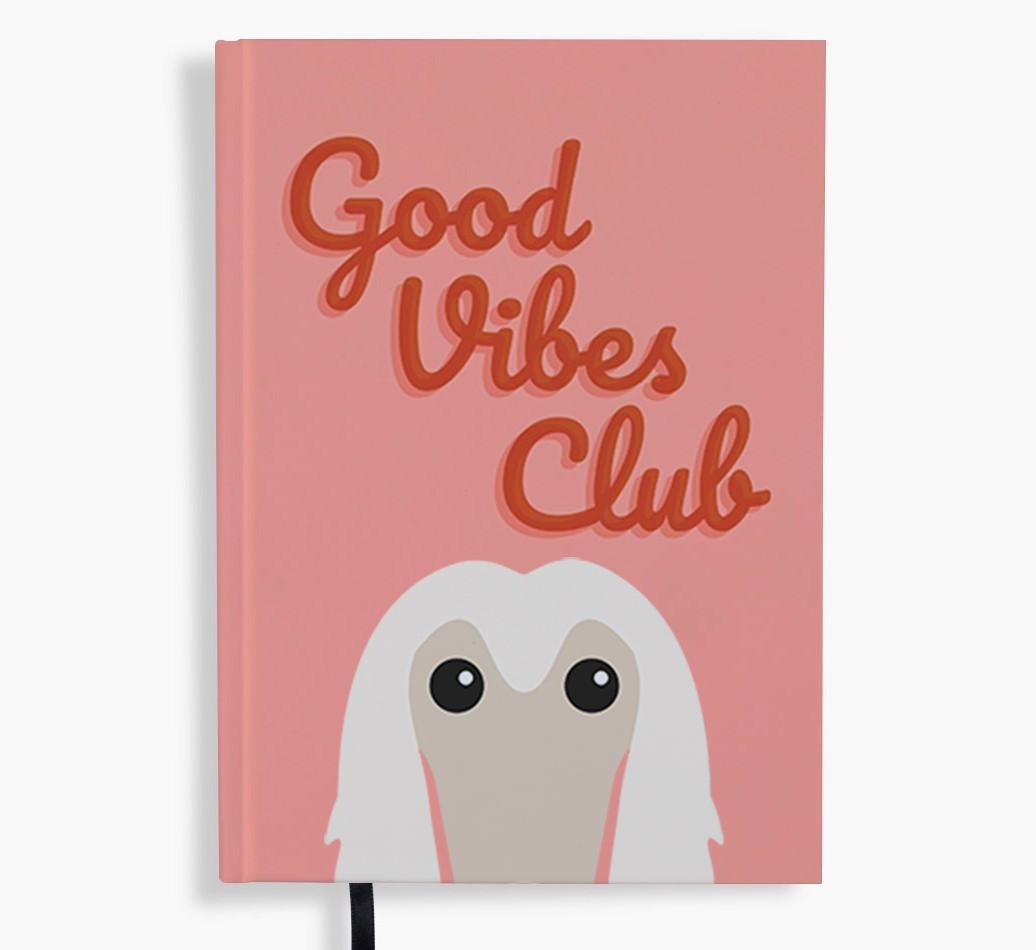 Are you and Afghan Hound all about the good vibes? Customized with your pup’s cheeky icon, this sleek and stylish notebook is the pawfect way to show off the lead member of the Good Vibes Club. Plus, as it's available in a range of eye-catching colorways, it'll encourage pawsitivity and good vibes each time you put pen to paper.