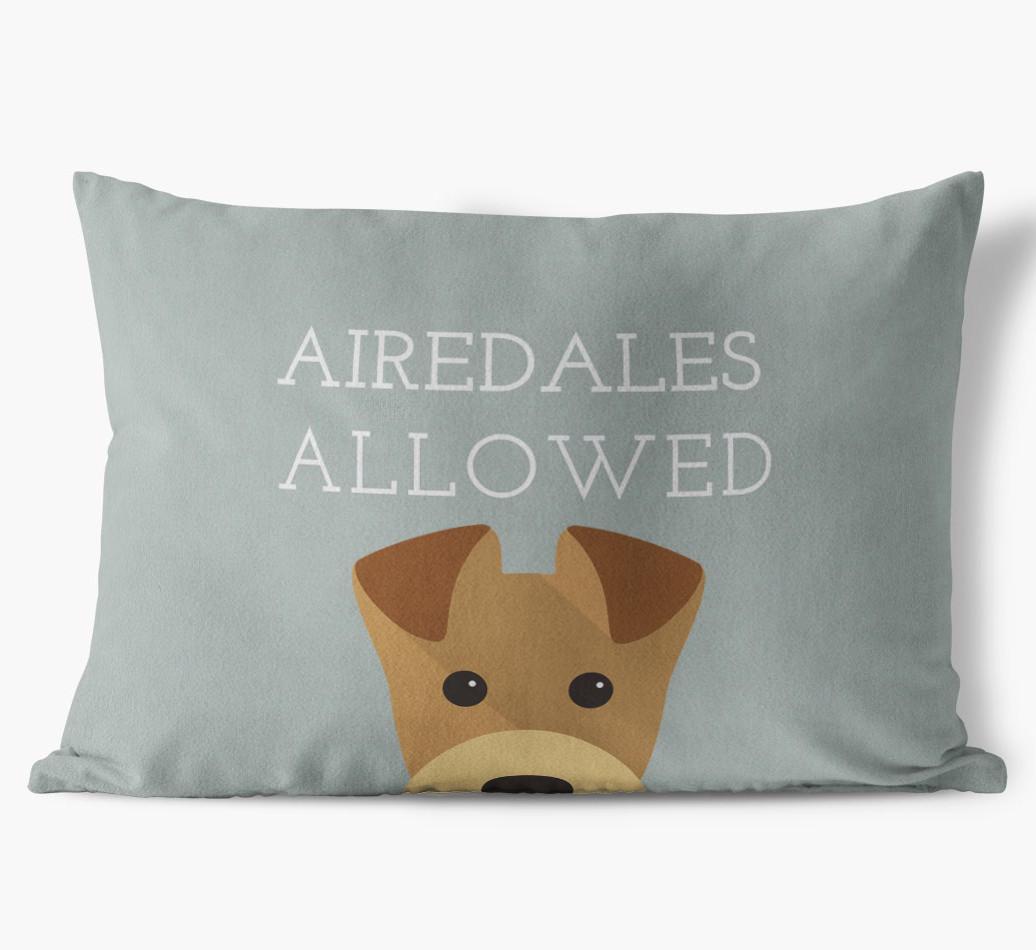 This exclusive, luxurious pillow is printed with the words ‘Airedales Allowed’, which I’m sure Your Airedale would definitely approve of.
