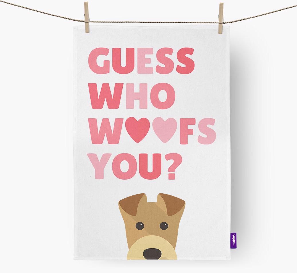 'Guess Who Woofs You?' - Personalized Airedale Terrier Dish Towel