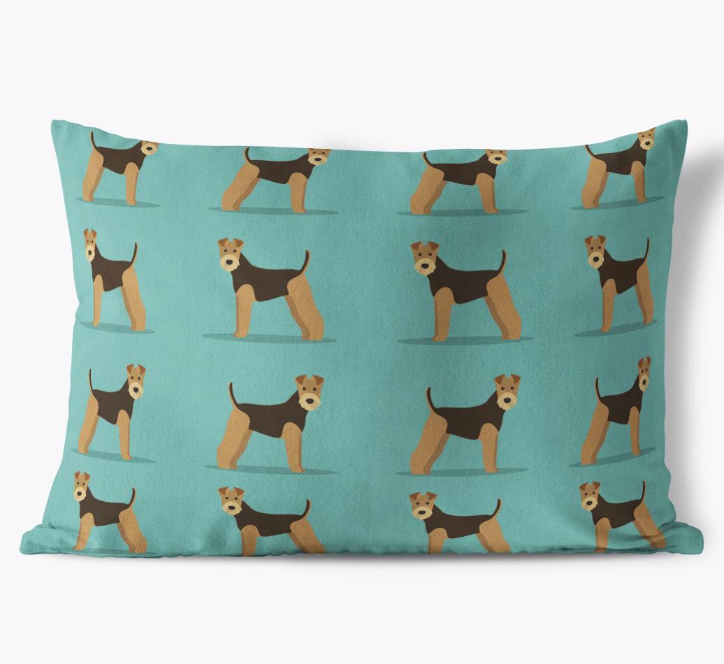 Featuring a pattern of our pawsome Airedale icons, this pillow really is wagnificent!