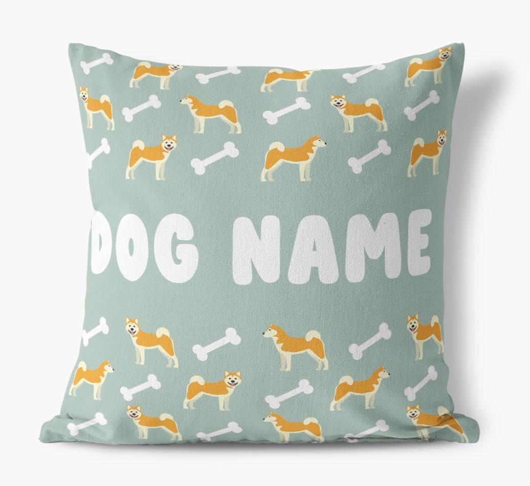 Personalized with Akita’s name against a background of Akita icons and bones, this gorgeous pillow is full of pawsonality.