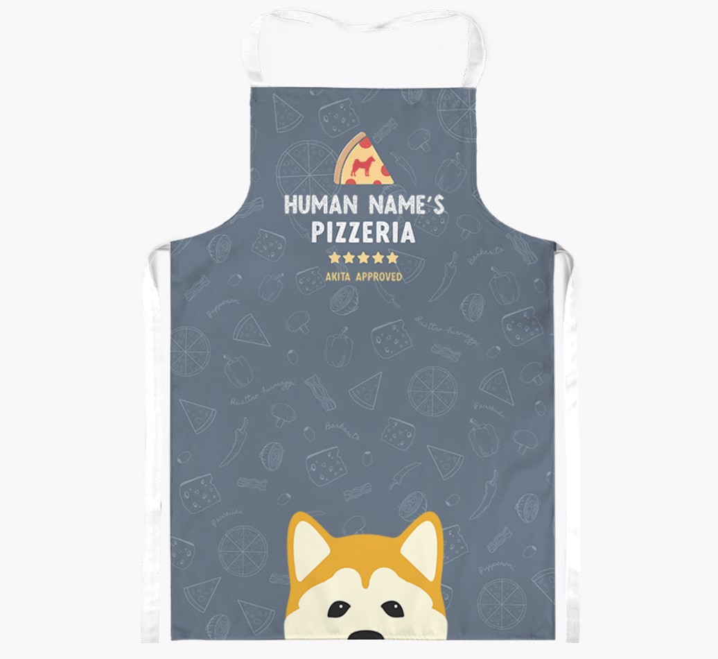 Featuring your furry friend's icon and lick of approval, plus your chosen human name, this apron is pawfect for anyone who considers themselves a pizza maestro in the kitchen. Available in a choice of 5 rustic colors, it'll make any Akita lover happy.