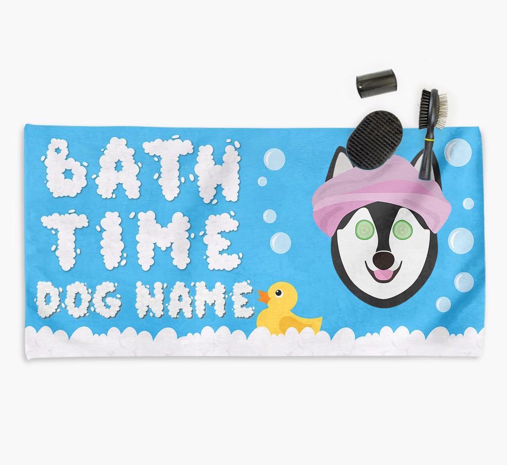 Bubble Bath Time: Personalized Alaskan Klee Kai Towel