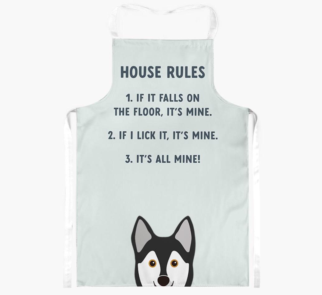 A fun way to show off your greedy pup, this stylish apron is personalized with your furry friend's icon and features their rules when it comes to food.
