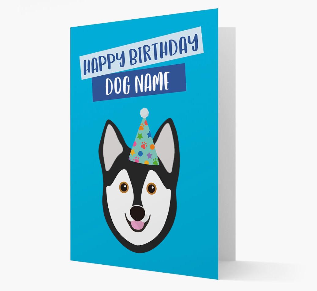 Why not wish Your Alaskan Klee Kai Happy Birthday in true pawty style with this party hat birthday card.