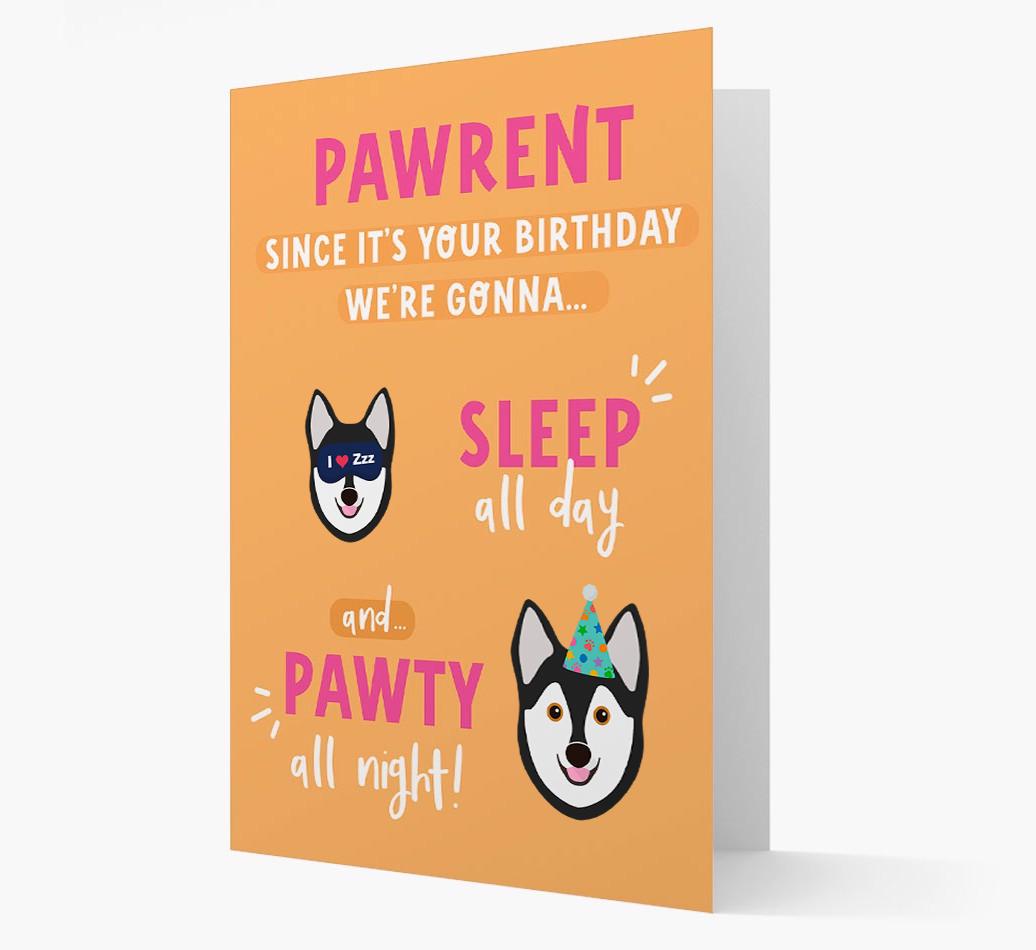 Sleep All Day, Pawty All Night: Personalized Card with Alaskan Klee Kai Icon