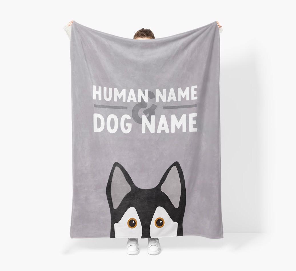 Human & Dog Name: Personalized Alaskan Klee Kai Premium Sherpa Fleece Blanket