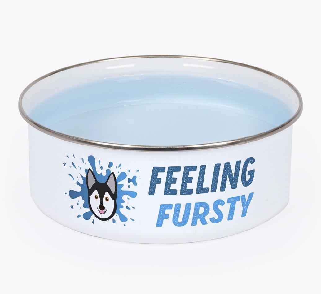 Featuring a fun splash design and personalized with your Klee Kai's cheeky icon, this enamel water bowl is complete with a travel lid, making it perfect for keeping Alaskan Klee Kai hydrated when you're out and about.