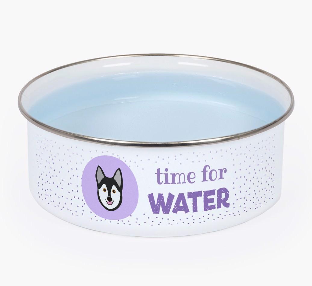 Time For Water: Personalized Enamel Alaskan Klee Kai Bowl