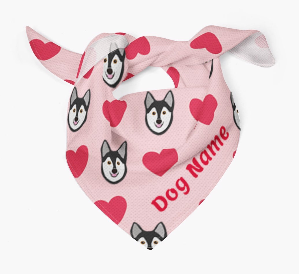 Featuring a pattern of love hearts and Alaskan Klee Kai icons, this cute bandana is a woofly way for Alaskan Klee Kai to dress up and share the puppy-love!