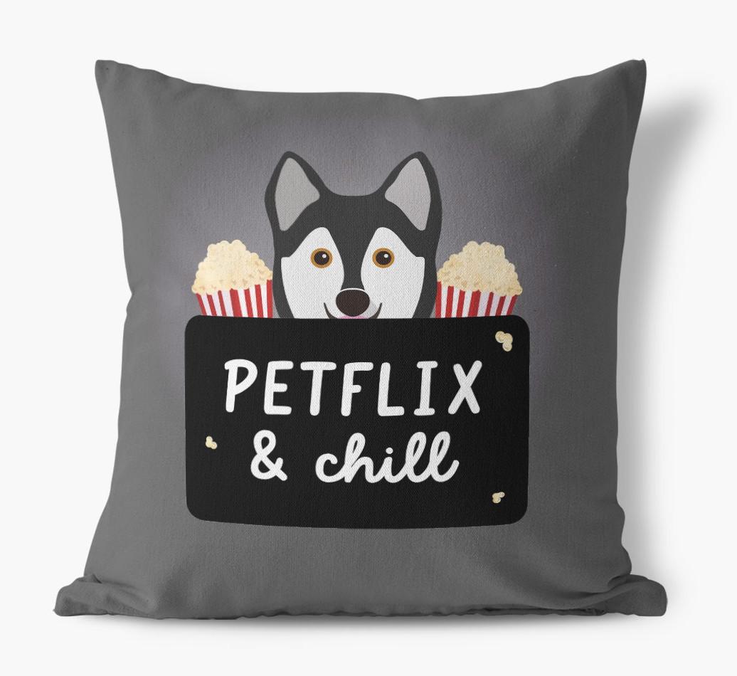 Personalized with your Alaskan Klee Kai's icon and available in six furbulous colours, this pillow will remind you that anytime is petflix and chill time!